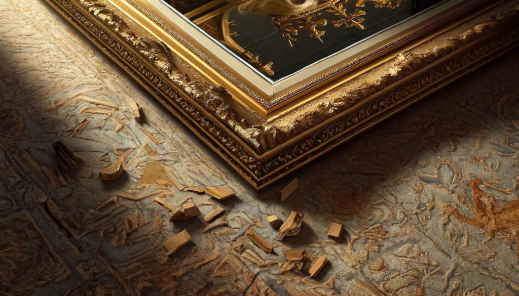 ……額から鮮血を流して倒れたアルマンの背後には、彼が近衛と揉み合った際に当たって鋲が緩んでしまったのか、前帝グランフェルテ五世アルフォンスの巨大な肖像画が落下していた。剣先に貫かれたままの、勇敢なフェルディナンは……彼の守るべき女主人に覆い被さったままの姿勢で眠りについた。