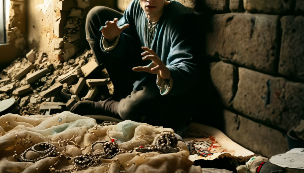 若者は複雑な表情を浮かべ、恐る恐る、その装飾品の詰まった袋と、緋色の瞳を交互に見やった。