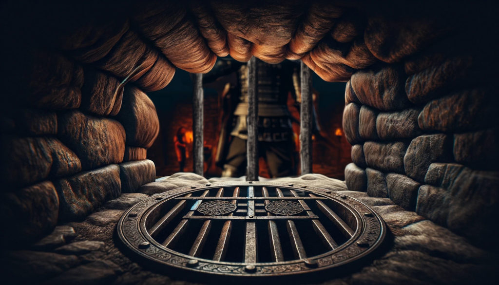 この、もともとは兵士詰所であったらしき小さな建物は、予想していたほど物々しい雰囲気はなかった。しかし、ポーレジオン兵たちは掃除が苦手だったのか……換気口とも思える地下通路は、ほとんど人の出入りがなかったのだろう、埃が積もっており、ここを通る三人の服は瞬く間に汚れてしまった。だが、表にポーレジオン兵に扮した帝国兵の目を盗んでここへ侵入するには、商店街の裏手から伸びるこの道を通るしか選択肢がなかったのだ。