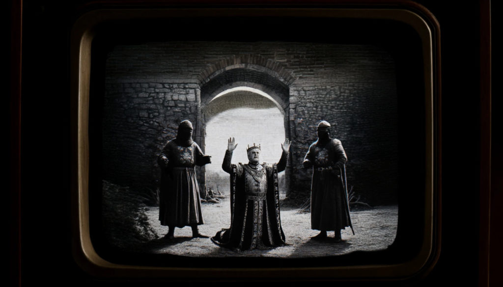 国王はなぜか帝国の仕掛けた映像装置の存在を知っているらしく、ゆっくりとこちらを向くと、両手を大きく広げた。その手に武器と呼べるものは何ひとつ握られていない。