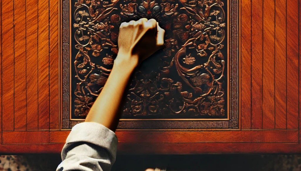 彼は意気揚々と、拳を卓上にかざした。……エマとリュックは呆然とそれを眺め、シーマは冷ややかな目でそれを見つめる。