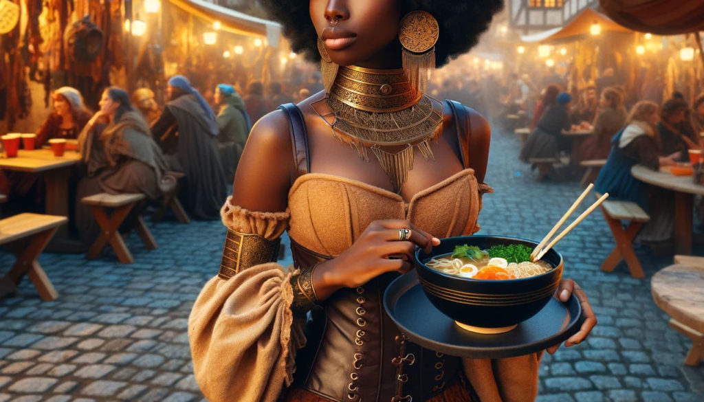 アナが何か言う間もなく、彼女は勝手にガチャンと耳障りな音を立てて卓に食事を置き、エマたちが座れずにいた椅子を引いて、よいしょっと掛け声と共に腰を下ろした。……アナがむっとする以前に呆気に取られているのも構わず、女性は大声で「いただきまーす」と言って熱々の麺をがつがつと啜り、使い込んだ手ぬぐいを取り出して汗を拭いては、「これ邪魔」と幾重にもかけていた首飾りを引きちぎるように外してテーブルに置き、また食事に没頭し始めた。