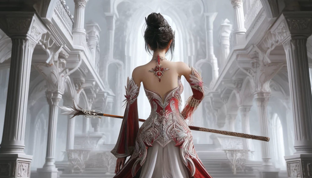 玉座の前に到達すると、フォンが後方へ下がり、彼女は再び深々と礼をし.……そして、漆黒の瞳を上げた。