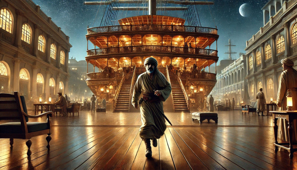 ともかく、ミリエランスの港で異彩を放ちながら停泊しているこの船に、イメルダは一行を気さくに招き入れた。内部には贅を尽くした食堂、華やかな遊技場、広大な宴会場が点在し、まるで海上の都市のようだ。エマとリュックは、まるで夢の中にいるかのように、目の前の光景を半信半疑で眺めていた。
